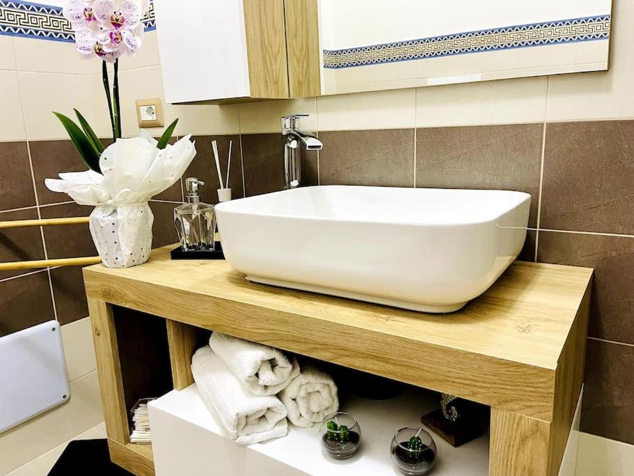 Questo appartamento con aria condizionata ha 2 camere da letto e 1 bagno con bidet, doccia edi cortesia. La cucina dispone di frigorifero, microonde e minibar, più macchina da caffè e bollitore elettrico.