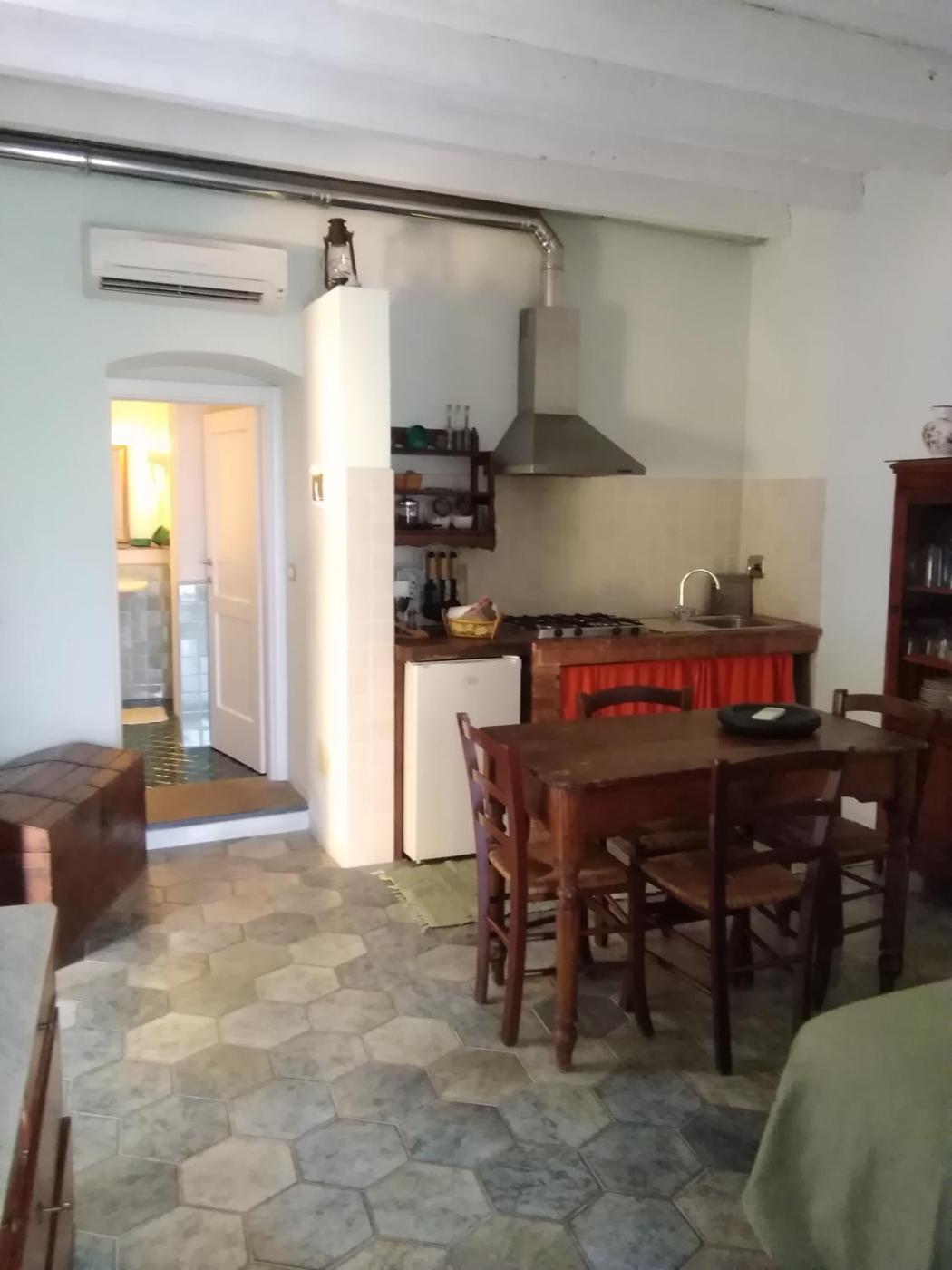 Monolocale con Vista Giardino. The studio offers a dining area, a wardrobe, as well as a private bathroom featuring a shower and a bidet. The fully equipped kitchenette features a stovetop, a refrigerator and kitchenware. Among the room amenities are air conditioning, a private entrance, a tea and coffee maker as well as a patio and sea views. The unit offers 1 bed.