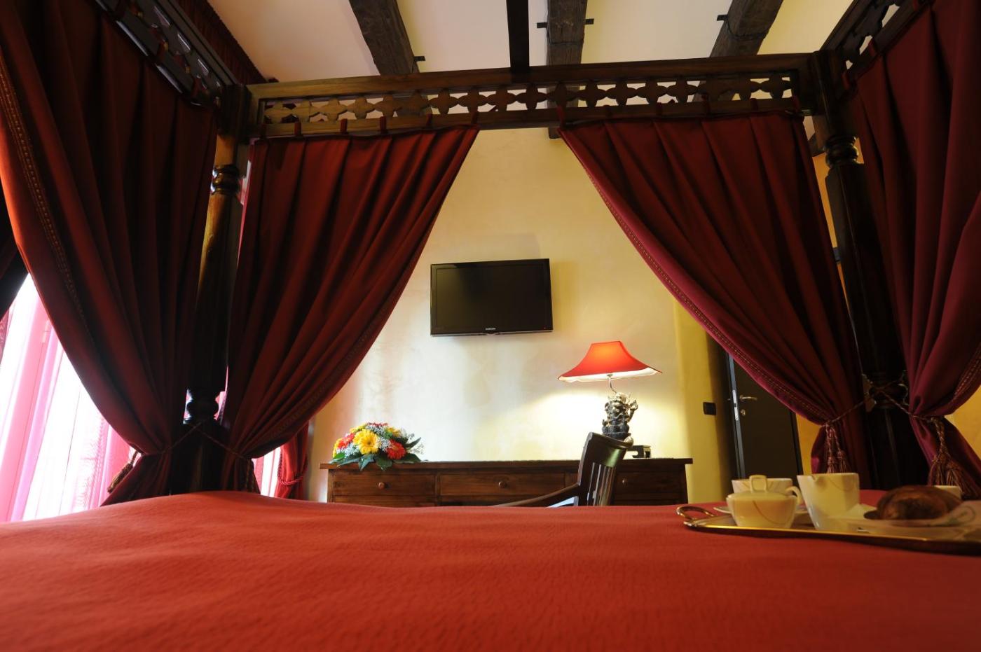 Camera Matrimoniale. With oriental-style décor and a four-poster bed, this air-conditioned room comes with large windows. It features an LCD TV, a minibar, and a private bathroom with hairdryer. Wi-Fi and local calls are free of charge. ;