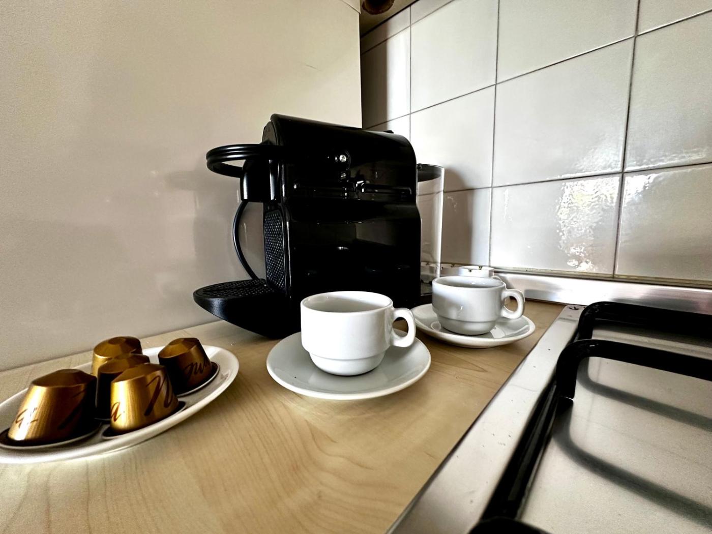 Questo appartamento con terrazza e vista sul mare presenta 1 camera da letto, un soggiorno, una TV a schermo piatto, una cucina con utensili e 1 bagno con bidet e doccia.