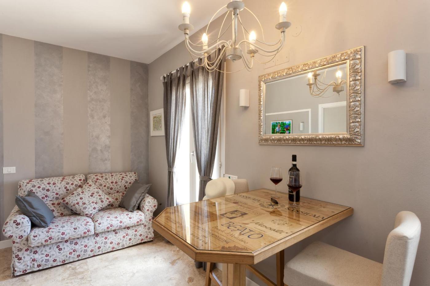 Suite con Balcone. Sito allultimo piano, questo appartamento include una terrazza con lettini e vista su Montalcino e sul paesaggio toscano. A vostra disposizione un soggiorno separato, una cucina e un bagno in marmo travertino.