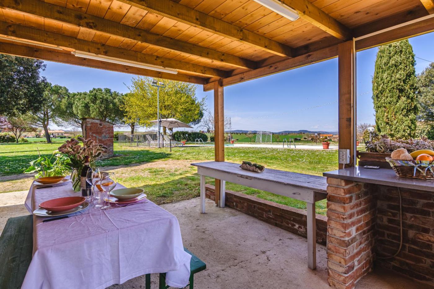 Villa con 3 Camere da Letto. The pool with a view and fireplace are the special features of this villa. Boasting a private entrance, this villa includes 1 living room, 3 separate bedrooms and 2 bathrooms with a shower and a bidet. Guests will find a stovetop, a refrigerator, kitchenware and an oven in the well-equipped kitchen. The villa also features a barbecue. The villa has tiled floors, a seating area with a flat-screen TV, a washing machine, a coffee machine as well as garden views. The unit has 3 beds.