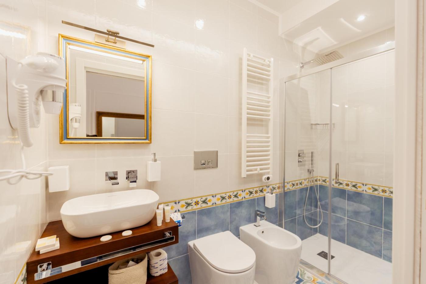 Camera Matrimoniale Deluxe. Providing free toiletries and bathrobes, this double room includes a private bathroom with a shower, a bidet and a hairdryer. The spacious air-conditioned double room provides a flat-screen TV with streaming services, a private entrance, soundproof walls, a minibar as well as ancourtyard view. The unit offers 1 bed. ;