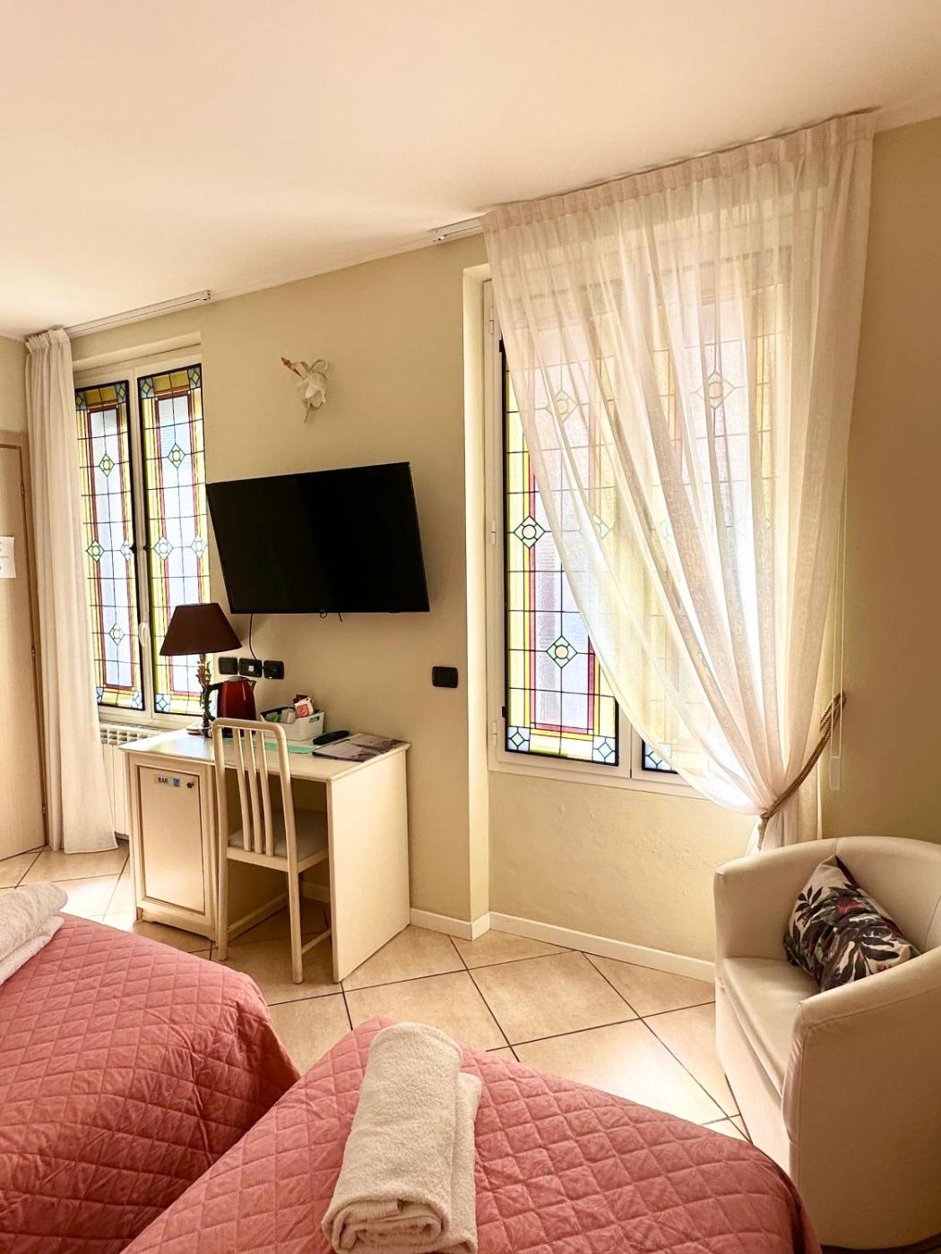 Camera Deluxe MatrimonialeDoppia con Letti Singoli. Featuring free toiletries, this twindouble room includes a private bathroom with a shower, a bidet and a hairdryer. This twindouble room has a private entrance, flat-screen TV with satellite channels, ancourtyard view, as well as chocolate for guests. The unit has 1 bed.