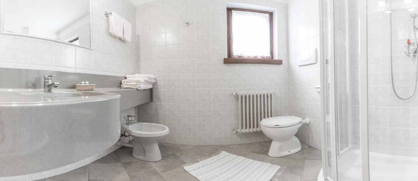Camera Familiare Superior. Camera familiare dotata di bagno privato con doccia a filo pavimento, bidè, asciugacapelli,di cortesia e accappatoi. Dispone inoltre di minibar, armadio, cassaforte, TV satellitare a schermo piatto e vista sulle montagne. Lalloggio presenta 3 letti.
