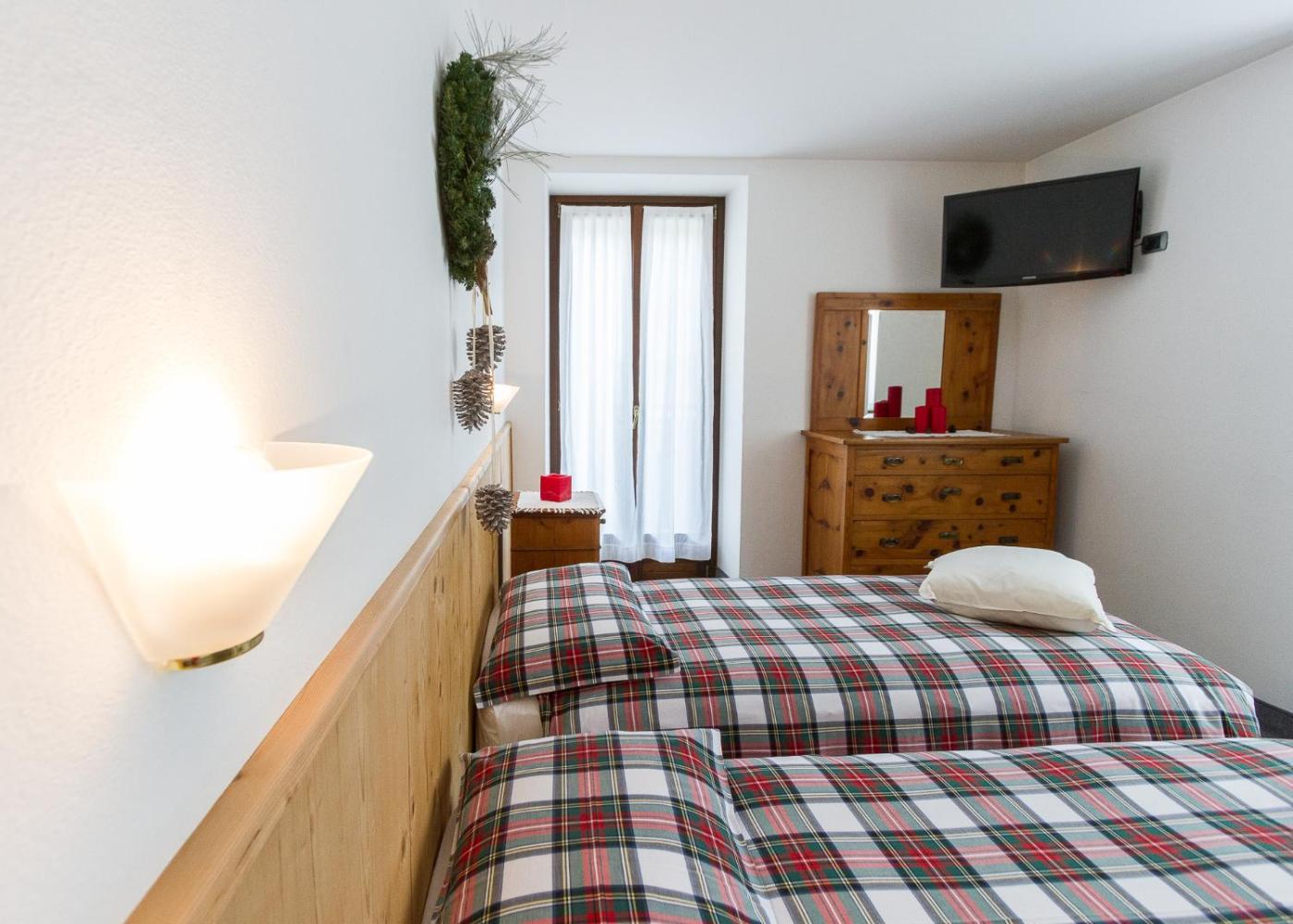 Camera Quadrupla. Camera quadrupla con bagno privato completo di doccia, bidet, asciugacapelli,di cortesia e accappatoi. Dispone inoltre di TV satellitare a schermo piatto, armadio, cassaforte, pavimento piastrellato e vista sulle montagne. Lalloggio presenta 3 letti. ;