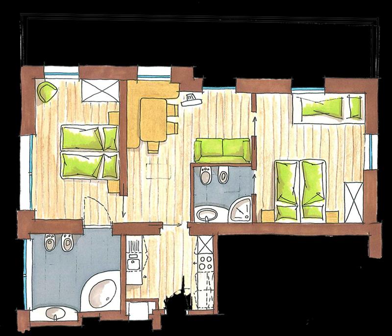 Ogni appartamento dispone di 1 posto auto gratuito. Il residence dista 10 minuti di auto da Ortisei ed è facilmente raggiungibile dallautostrada A22.
