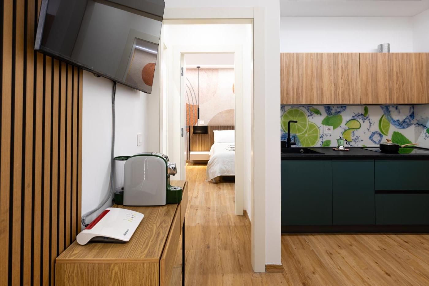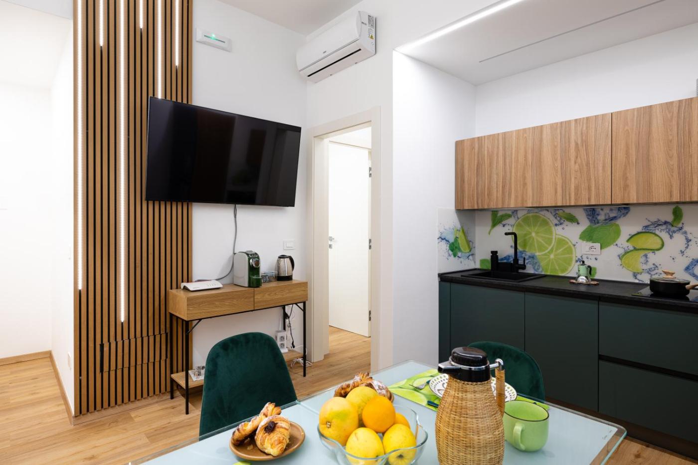 One-Bedroom Apartment. The fully equipped kitchen has a stovetop, a refrigerator, a dishwasher and kitchenware. This apartment is air-conditioned and features a seating area with a flat-screen TV, a washing machine, a private entrance, a tea and coffee maker, as well as a wardrobe. The unit offers 1 bed.