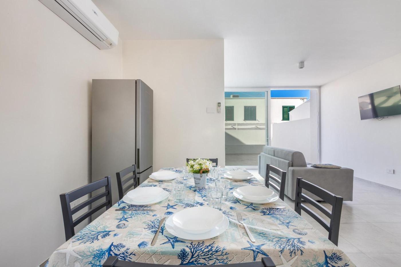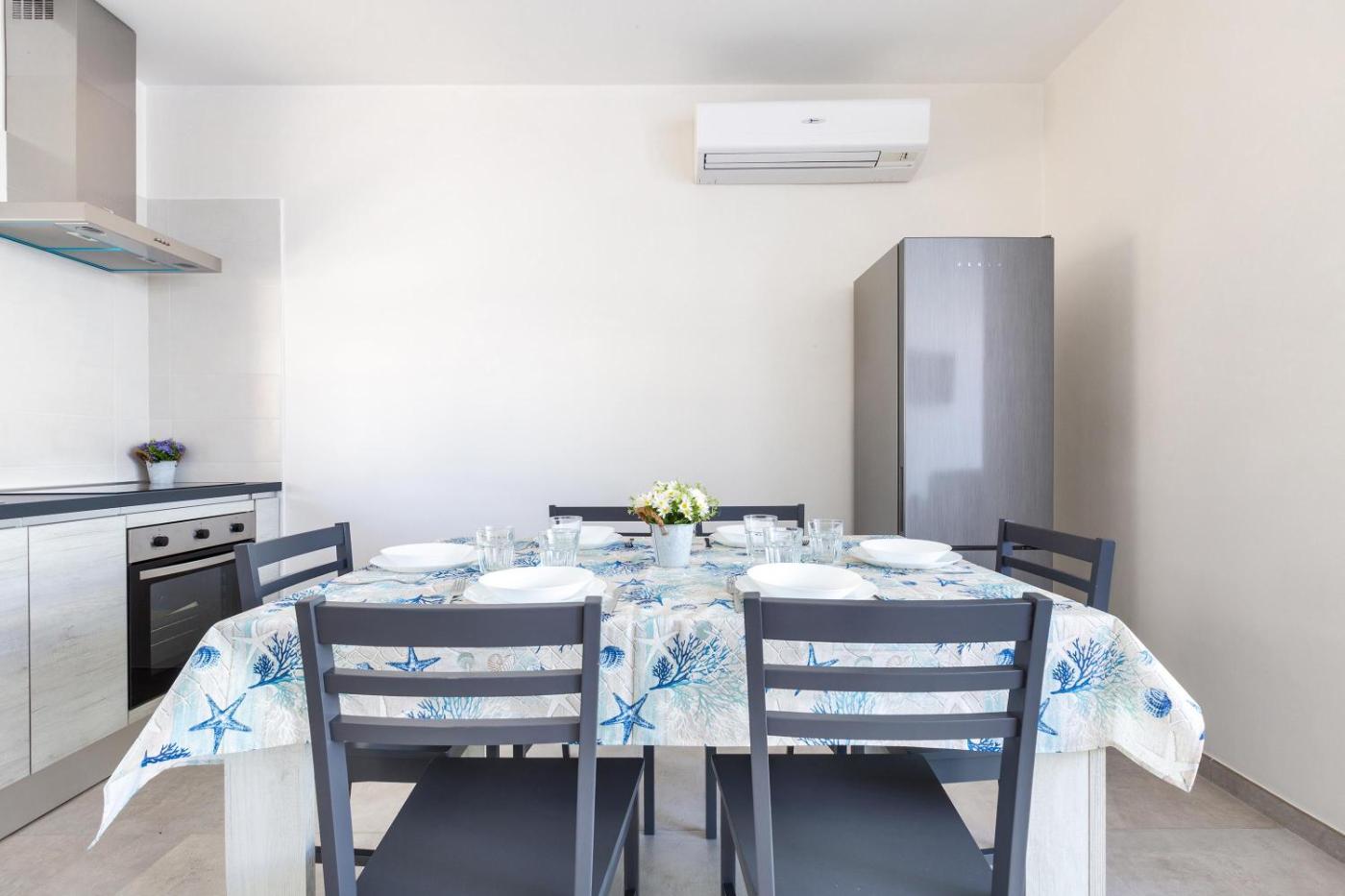 Questa casa vacanze con aria condizionata comprende 2 camere da letto, un soggiorno, una cucina con utensili piĂą frigorifero, e 2 bagni con bidet e asciugacapelli. Presso questa casa vacanze troverete asciugamani e lenzuola tra i servizi disponibili.